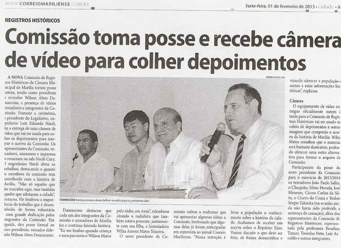2013 237 Comissão toma posse e recebe câmera de vídeo para colher depoimentos - Correio Mariliense 01-02-2013.jpg