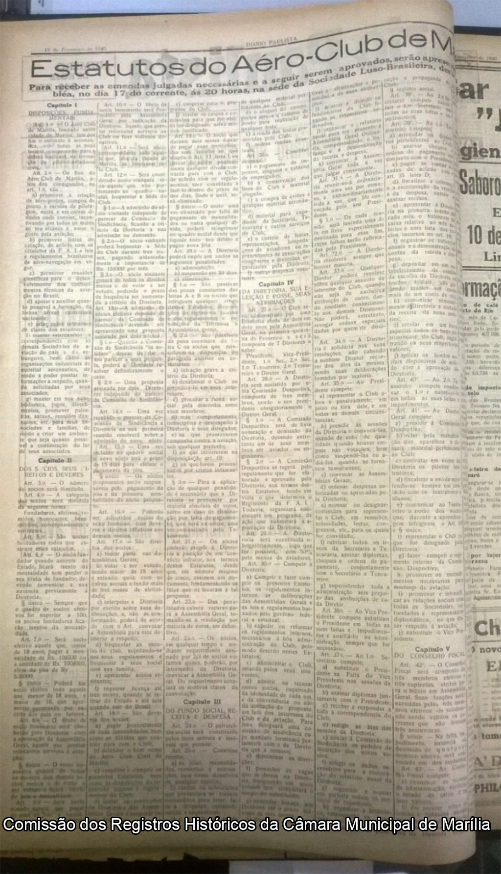 Jornal Diário de SP (Marília)com matéria sobre aprovação do Estatuto do Aeroclube de Marília