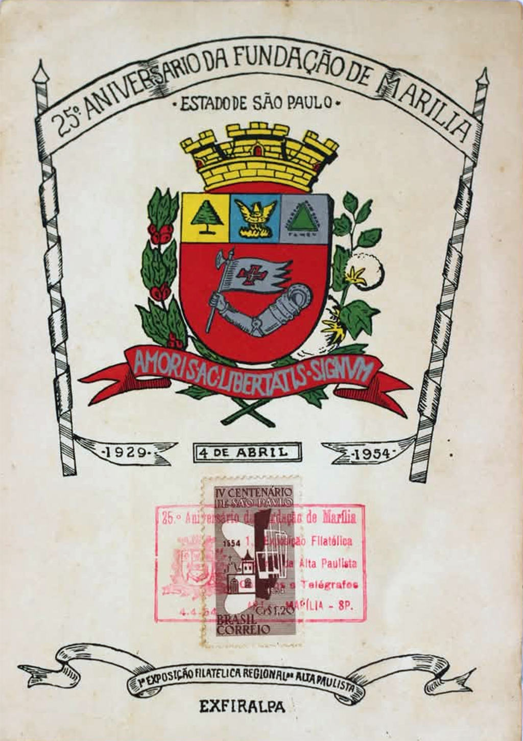Importante registro da participação de Marília na filatelia com a realização da 1ª exposição filatélica regional da Alta Paulista