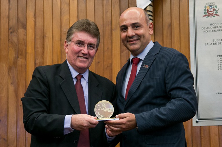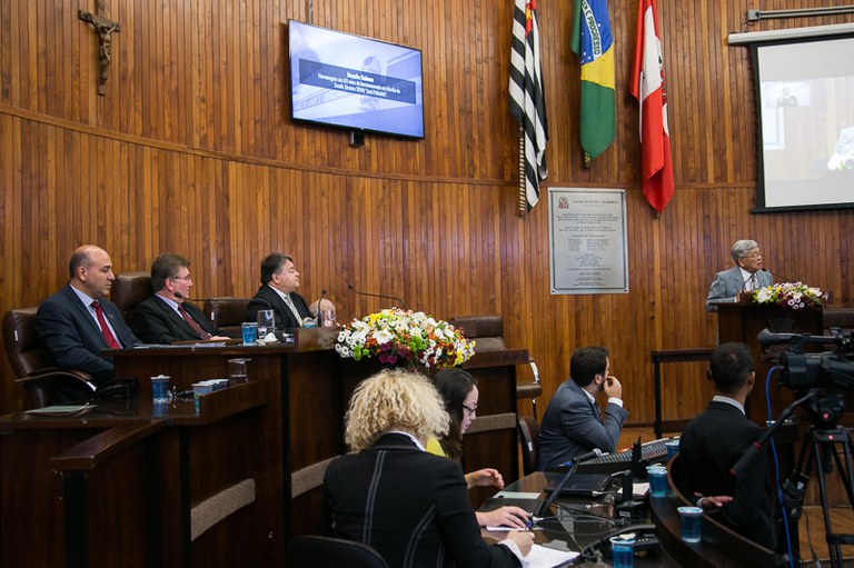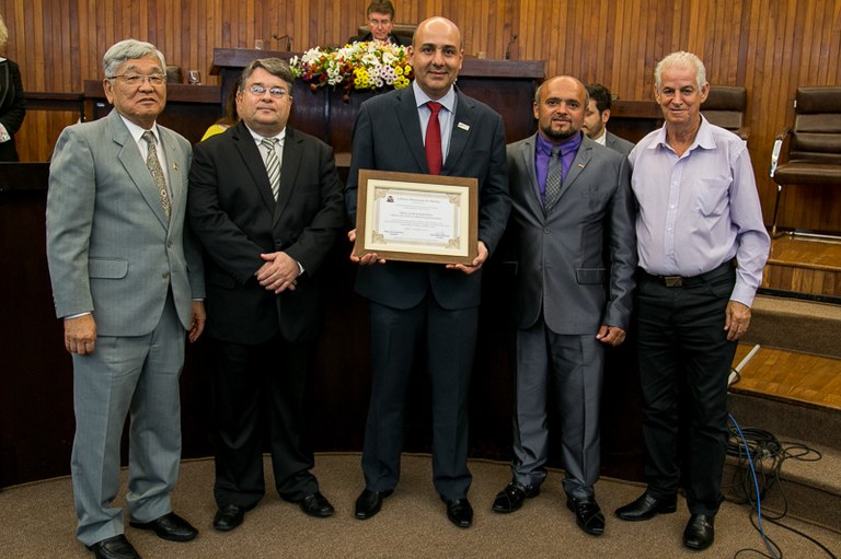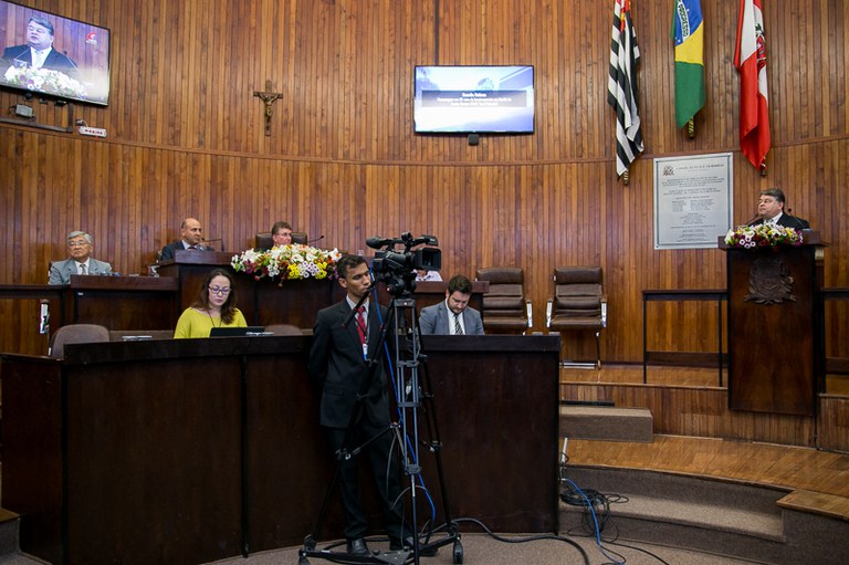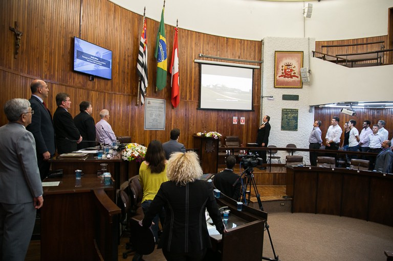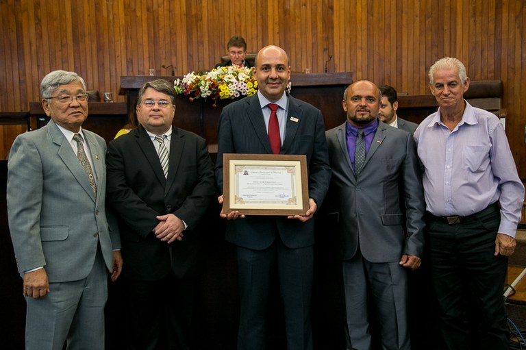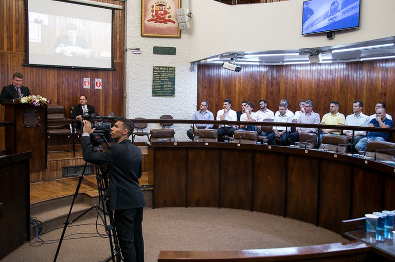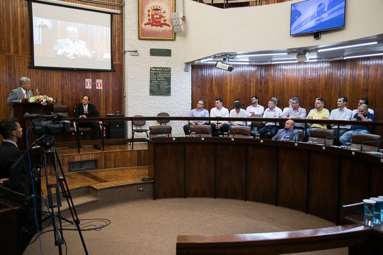 Sessão solene, realizada em 07 de Dezembro de 2017, em homenagem aos 65 anos de funcionamento em Marília da Escola Técnica SENAI "José Polizotto"