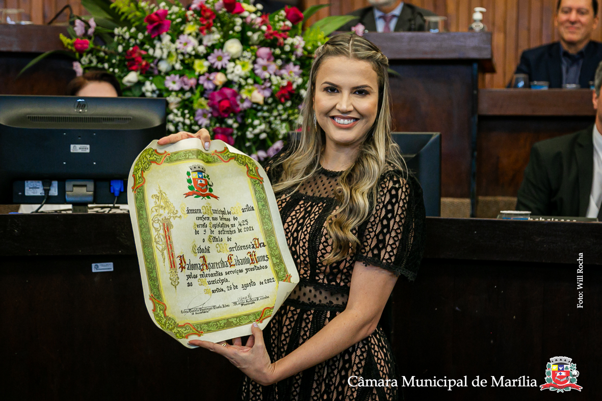 6ª Sessão Solene - 26 de agosto de 2022 - Título de Cidadã Mariliense à Dra. Paloma Aparecida Libanio Nunes