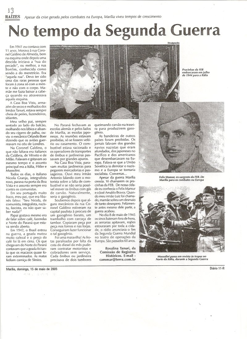 Raízes- Artigos Profª Rosalina Tanuri- 2005