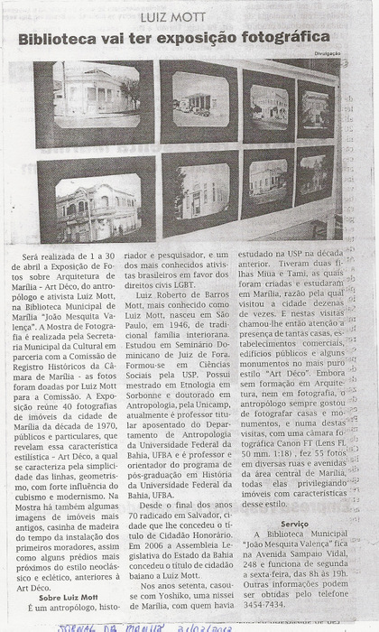 2013 243 Biblioteca vai ter exposição fotográfica de Luiz Mott - Jornal da Manhã 31-03-2013.jpg