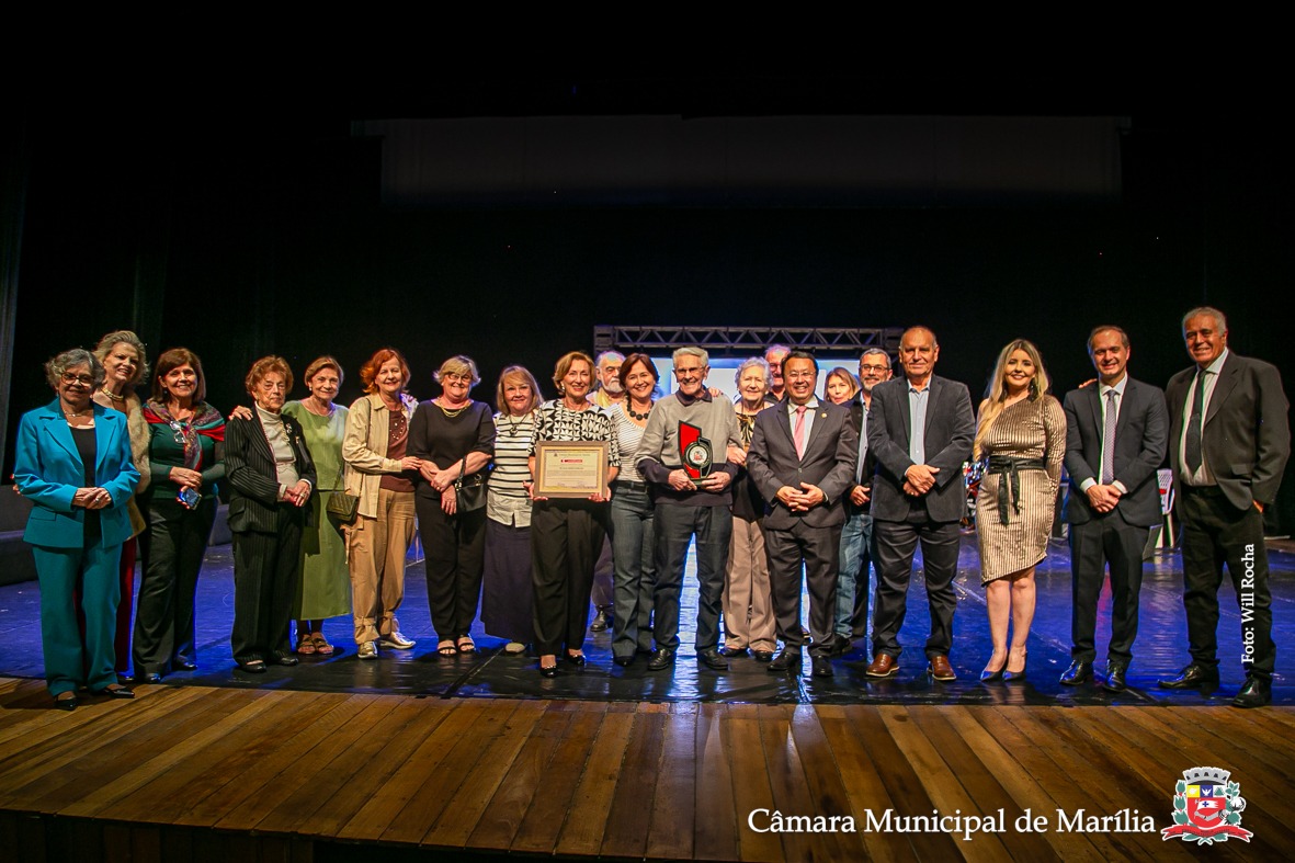 Aldo Conelian, ao centro, ex-vereador e criador da Comissão de Registros Históricos, foi um dos homenageados na 38ª Noite dos Pioneiros (Foto: Will Rocha)